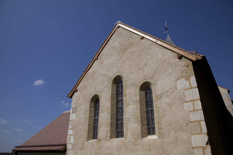 Savoir-faire : taille de pierre (fenestrages et contreforts), maçonnerie de moellons-enduits coupé truelle, patine d’harmonisation, agrafes et goujons : consolidation des corbeaux, nettoyage de pierre en conservation par brosse douce et à l’eau.