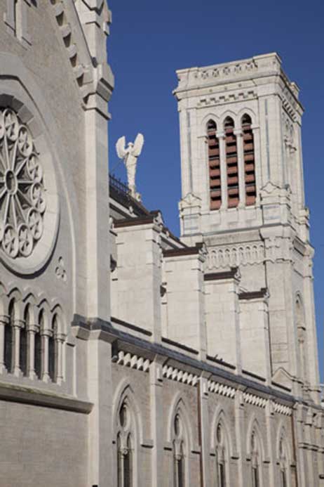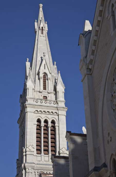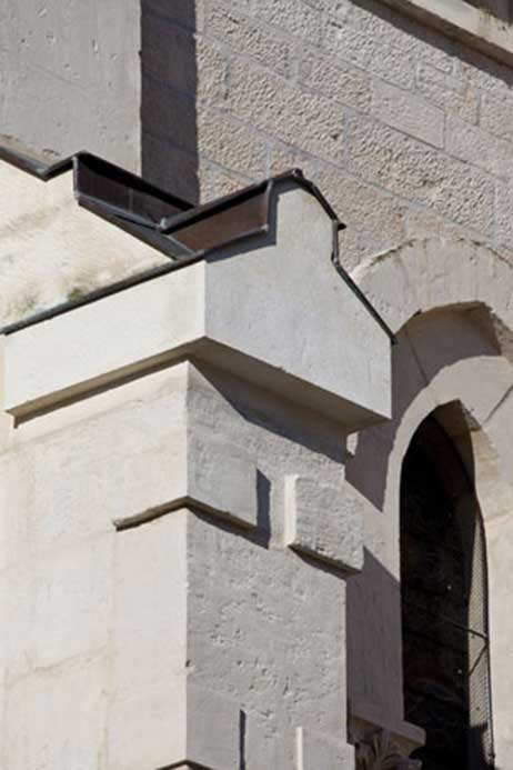Techniques utilisées : Gommage de l’ensemble des parements pierre, relevé taille et pose des éléments dégradés, pierre tendre, dépose repose des arcs boutants, ravalement des éléments à conserver, reprise des joints à la chaux sur les parements pierre de taille, eau forte sur l’ensemble des parements.
