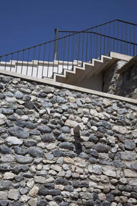 Techniques utilisées : Dépose, repose de maçonnerie de moellon, rejointoiement en recherche sur maçonnerie, piochement d’enduits, pose de pierre de taille, taille des parements, patine, dallage.