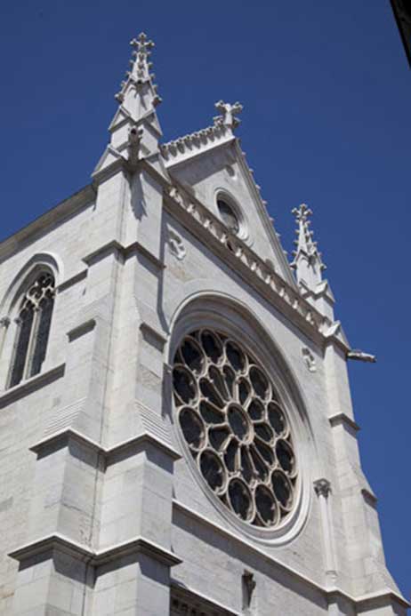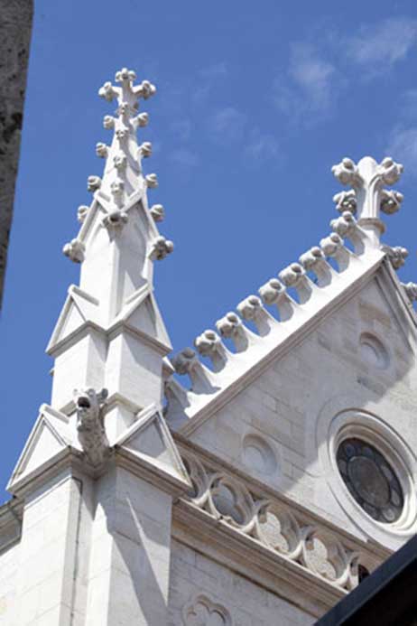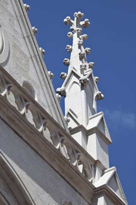 Techniques utilisées : Gommage de l’ensembles des parements pierre, relevé taille et pose des éléments dégradés, dépose repose des arcs boutants, reprise des joints à la chaux sur les parements et au plomb sur les éléments de rejaillissement, eau forte sur l’ensemble des parements.