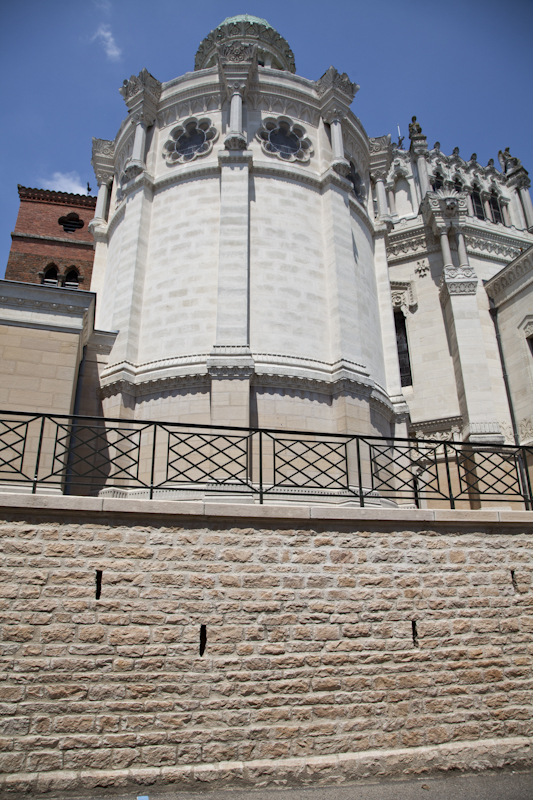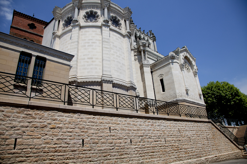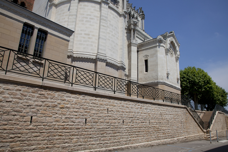 La restauration de cette partie du mur constitue donc un véritable challenge technique conjuguant un travail de terrassement et de buttonage particulièrement soignée en raison des fondations de la basilique proche, pour réaliser la dépose de la partie haute du mur afin de reconstruire celui-ci avec le talus originel et réaliser un drain sur la partie enterrée.
