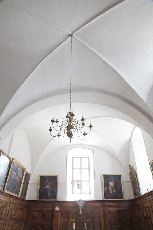Techniques utilisées : Réalisation d’un drain extérieur réseau EP et pose de regard (profondeur 1 mètre). La réalisation d’enduit à la chaux compris la consolidation des voûtes en intrados et extrados par d’agrafes et remaillage en pierre de tuf. la pose de tirants en fibres de verre (carottage dans mur moellon) longueur maxi : 21 Mètres.