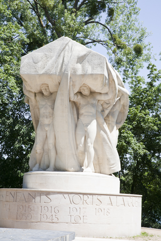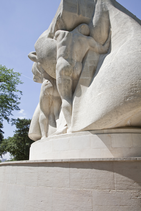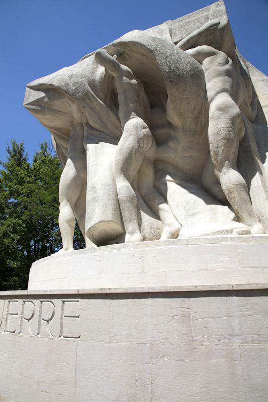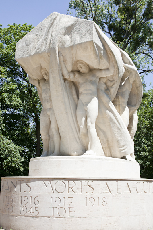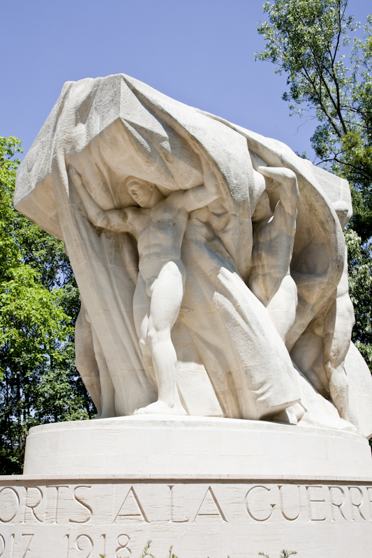 Le cénotaphe avec la mise en œuvre d’un échafaudage lourd permettant l’accès à l’ensemble des parements pierre, le nettoyage par gommage, la restauration des pierres avec greffes et ragréages, le traitement de l’étanchéité de la partie sommitale et la réalisation de patines en recherche.